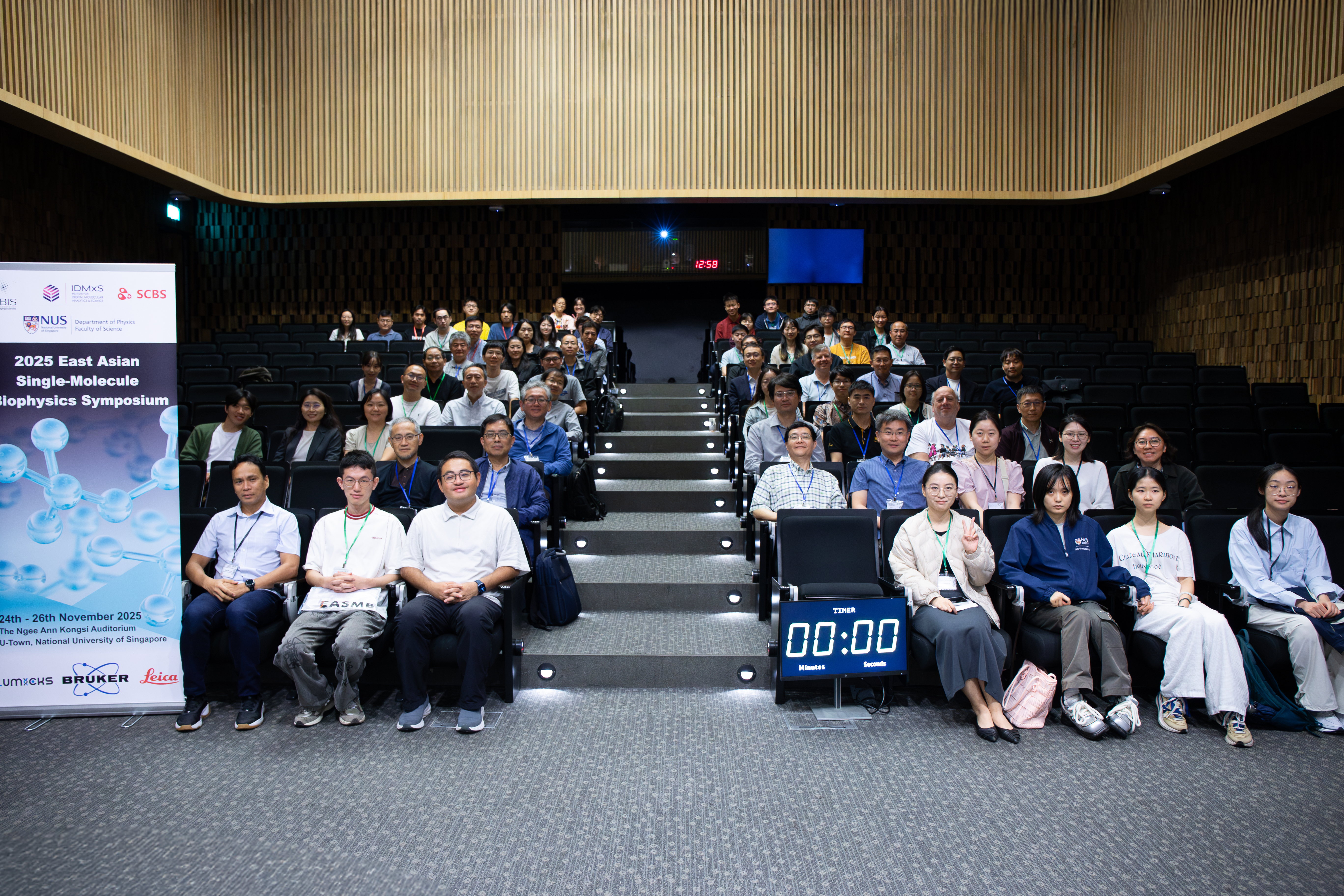 The East Asian Single-Molecule Biophysics Symposium 2025 (EASMB2025) was held from 24 to 26 November at the Ngee Ann Kongsi Auditorium in the Education Resource Centre, UTown, National University of Singapore. Chaired by Jie Yan, MBI and jointly organized with various institutions across South Korea, China, and Japan, the symposium showcased cutting-edge advances in single‑molecule biophysics across technology development, nucleic acids, mechanosensing, molecular motors, and biomolecular organization.