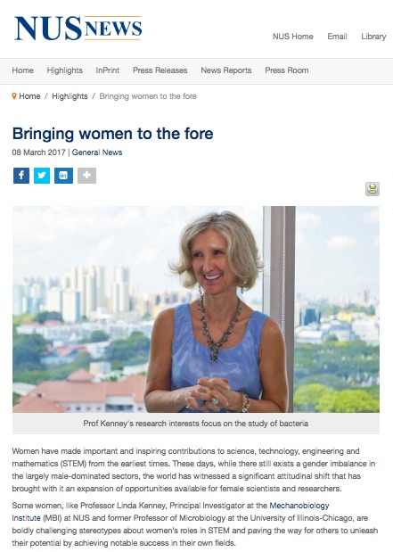 “A cause close to her heart is the MBI Women in Science (MBI-WIS) group, which she founded in 2013. Composed of graduate students, staff, postdoctoral fellows and faculty in the sciences in Singapore, MBI-WIS is dedicated to achieving equal and full participation of women in all areas of science. The group organises activities such as sharing sessions to learn from successful women and events aimed at increasing camaraderie, as well as the Biological Symposium (Bios) series featuring an impressive all-female lineup of speakers and panel discussions on science and women’s issues. MBI-WIS has also managed to push for at least 30 per cent female representation at all MBI-sponsored meetings and events.” Read the full article