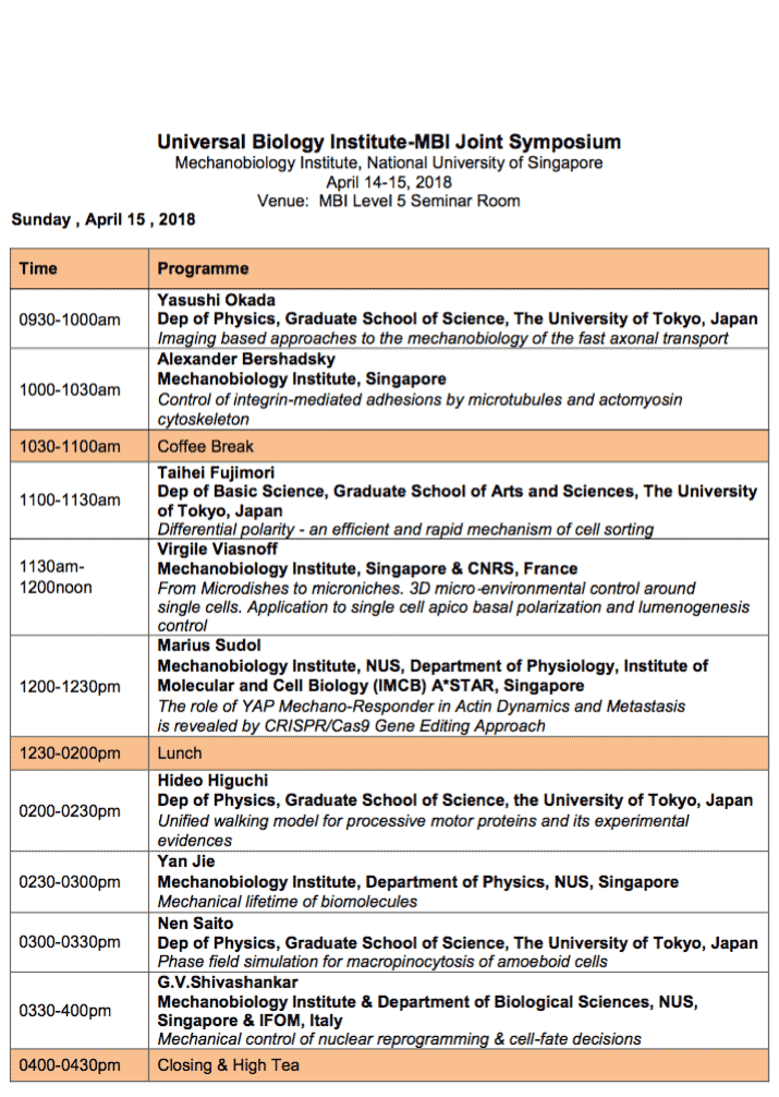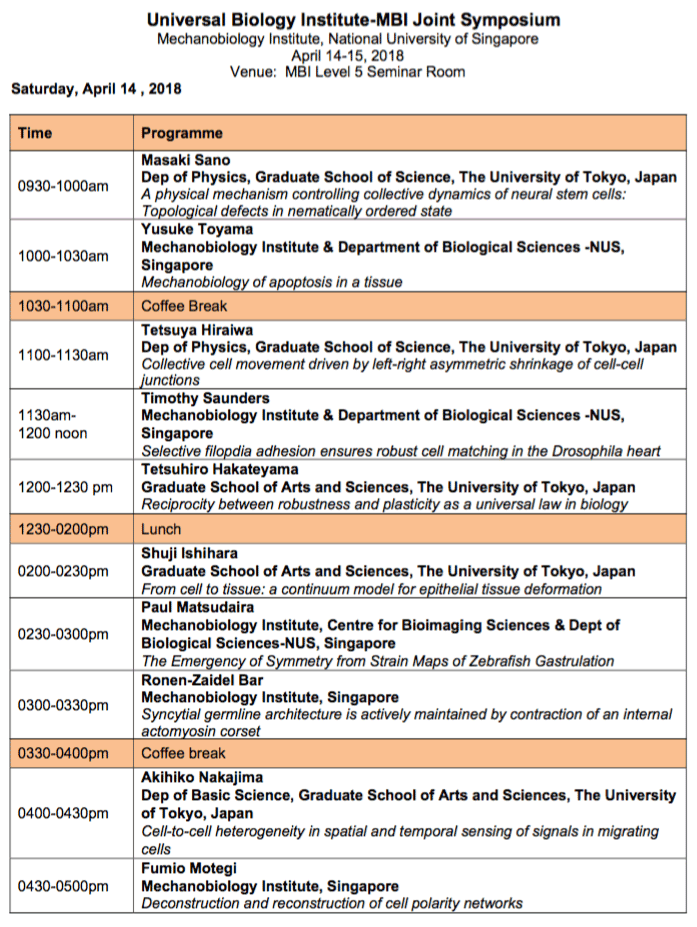 Joint Symposium between Universal Biology Institute, Tokyo, and Mechanobiology Institute, National University of Singapore