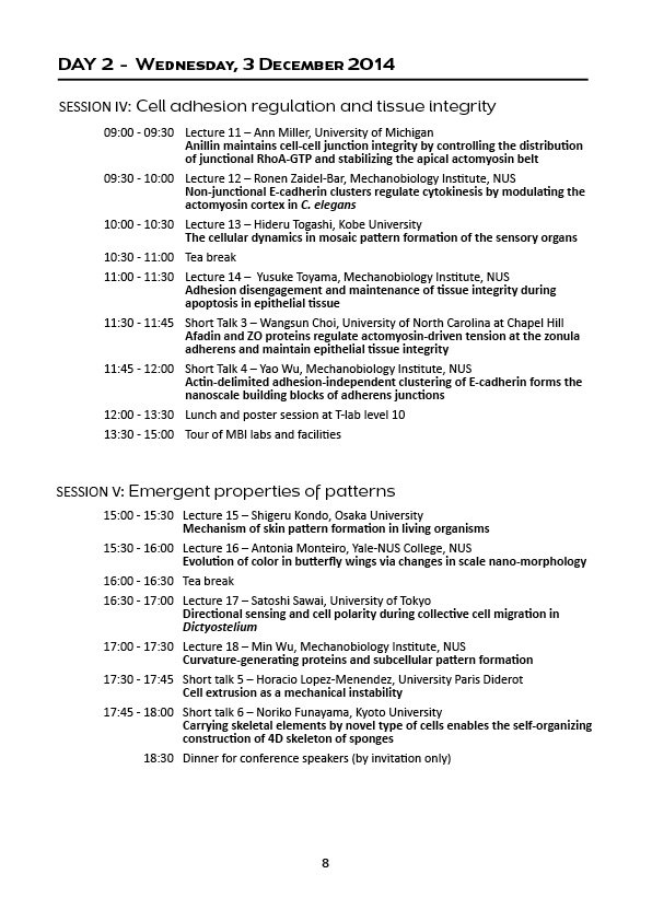 - Session IV : Cell adhesion regulation and tissue integrity – Fumio Motegi