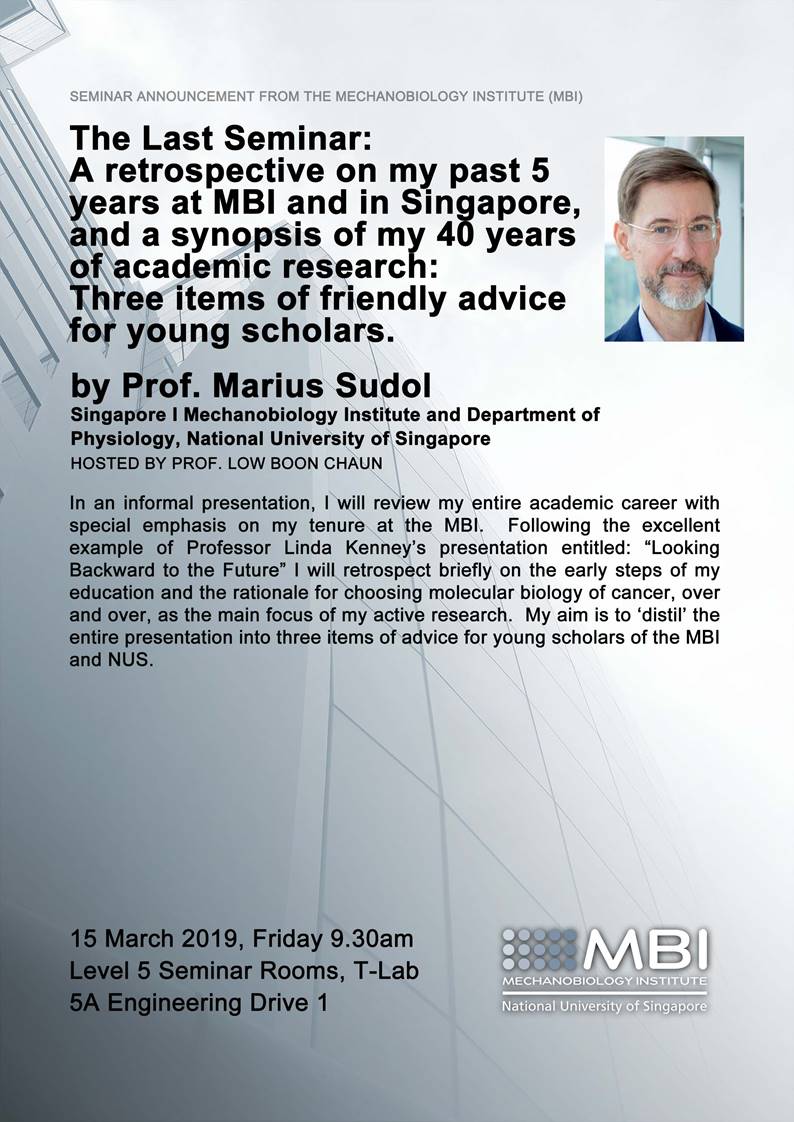 by Prof. Marius Sudol, Co-PI at Mechanobiology Institute and Associate Professor at Department of Physiology, National University of Singapore.
