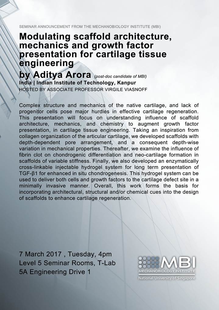 Modulating scaffold architecture, mechanics and growth factor presentation for cartilage tissue engineering by Aditya Arora