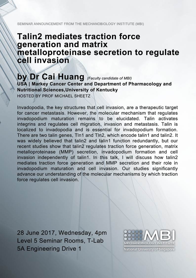 Talin2 mediates traction force generation and matrix metalloproteinase secretion to regulate cell invasion by Dr Cai Huang