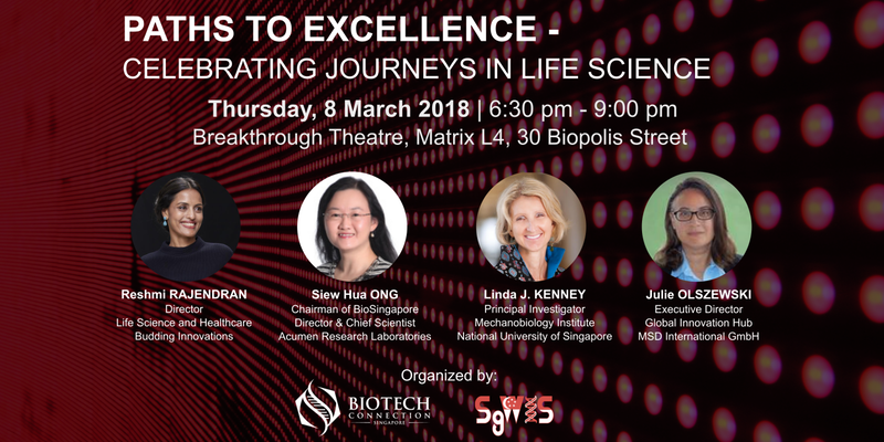 There are many career paths in life science, each with its own set of challenges and rewards. In conjunction with International Women’s Day, Biotech Connection Singapore (BCS) and Singapore Women in Science (SgWIS) jointly present our next panel discussion event – Paths to Excellence – Celebrating Journeys in Life Science.