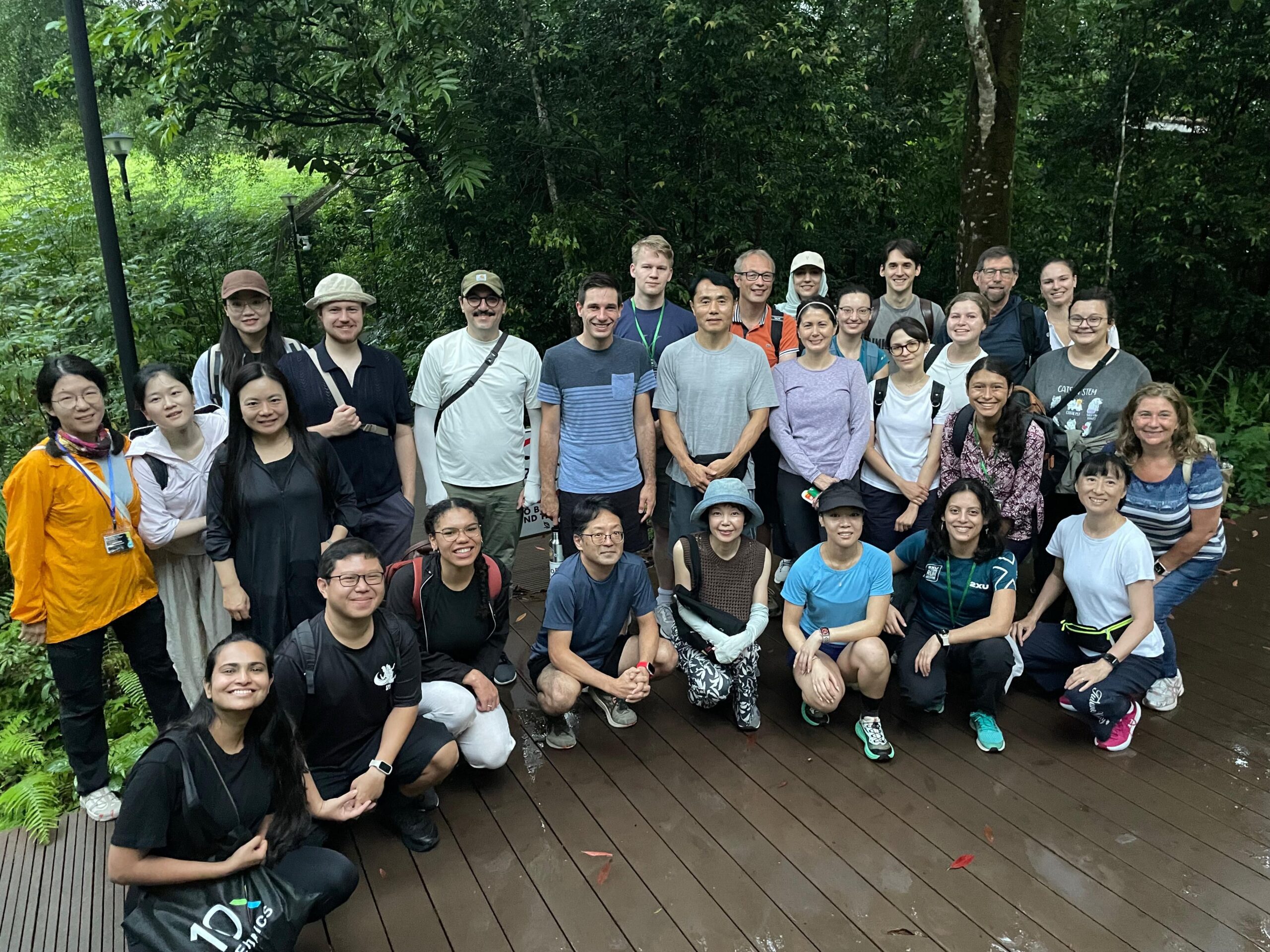 Across four days of talks, participants explored topics ranging from single-molecule force sensing to tissue-level mechanics, aging, and disease and the latest developments in imaging. The energy of the sessions was matched by a lively social programme: the Hawker Centre Mentorship Night, where invited speakers dished out advice for aspiring scientists over local food; the Conference Banquet, which featured a push-up challenge in honor of Professor Sheetz; and the Rainforest Jungle Walk, which offered a moment of quiet reflection and exploration among Singapore’s greenery. The event concluded with the Concrete Jungle Rooftop Gathering, a fitting finale against the city skyline to celebrate new collaborations and future directions.