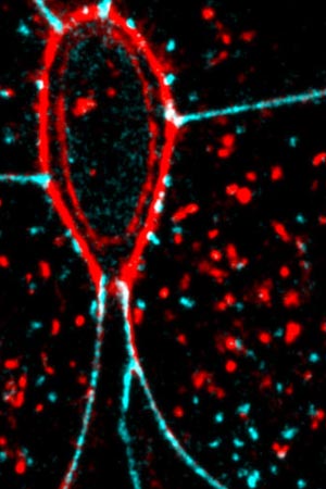 Cell apoptosis is crucial in development as it enables the size of the embryo, and the number of cells in each region, to be precisely regulated. Here, apoptosis balances out cell division. At the MBI, we investigate how cells achieve extrusion using actomyosin cables. These cables, which are formed within the dying cell as well as within neighboring cells, contract in what is known as the purse-string mechanism. This contraction generates a sufficient amount of force to squeeze the dying cells out.