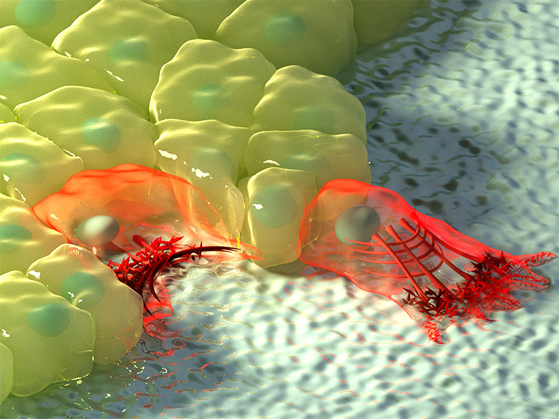This ability allows the cell to select an appropriate mechanism to continue migration, even when faced with diverse changes in the physical environment, much like how an off road vehicle can switch between two- and four-wheel drive depending on the terrain. With the new knowledge of this actin flow switch, scientists may be better able to understand how cells can continue migration during wound healing, or in situations where migration can be damaging such as the metastatic progression of cancer.