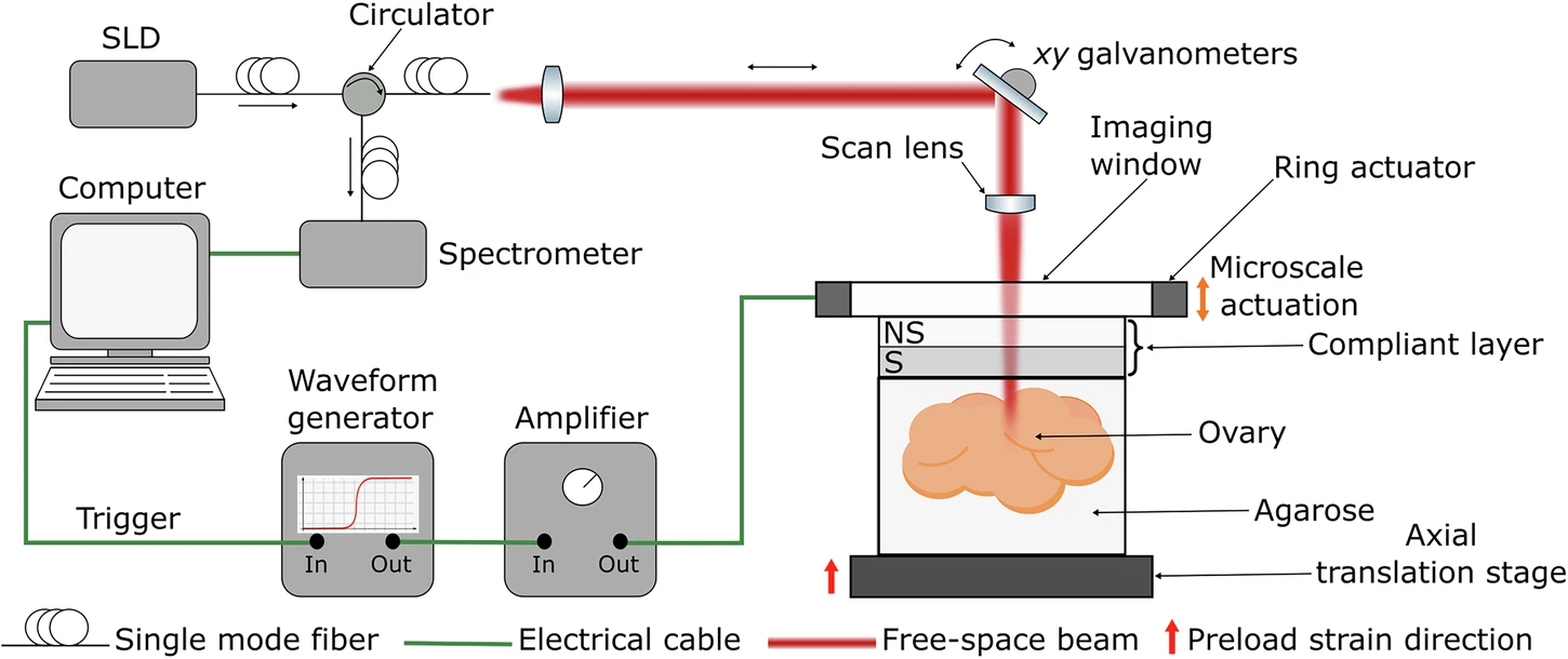 The new imaging technique used in this study overcomes the limitations of previous methods. Unlike many indentation-based approaches, which were invasive and could alter the tissue mechanical properties during sample preparation, quantitative micro-elastography allows researchers to measure ovarian tissue mechanics in three dimensions with minimal damage. It also offers deep tissue penetration, faster scanning speeds, and the ability to resolve features down to 35 micrometres, enabling tissue-scale mechanical mapping across the entire ovary.
