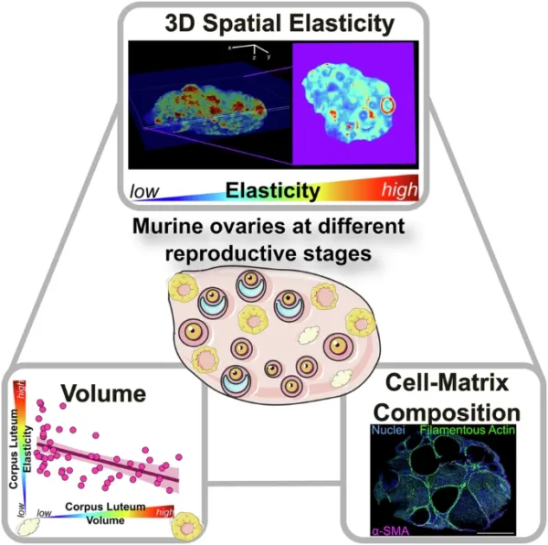 Earlier studies using techniques like indentation microscopy suggested that ovarian tissue becomes stiffer with age, a finding linked to infertility. But those methods could only provide a broad view at the organ level, without capturing how individual parts of the ovary—such as follicles, the corpus luteum, and the surrounding matrix—change dynamically during aging. These components each play specific and critical roles in the reproductive process, and understanding their unique mechanical properties is key to developing more effective fertility treatments.
